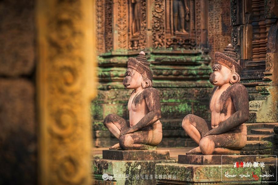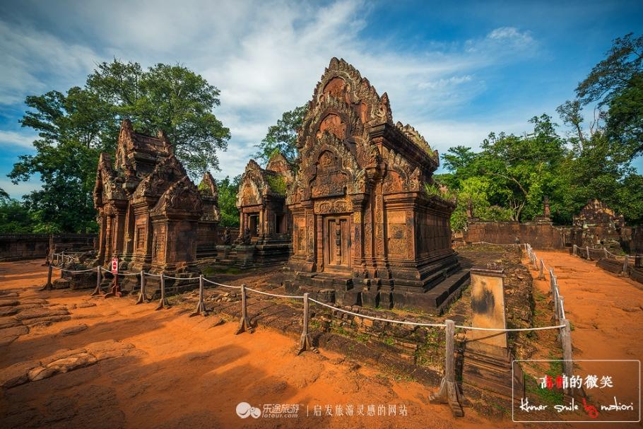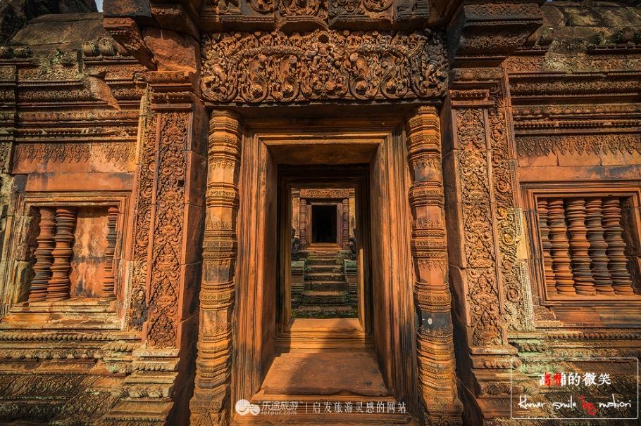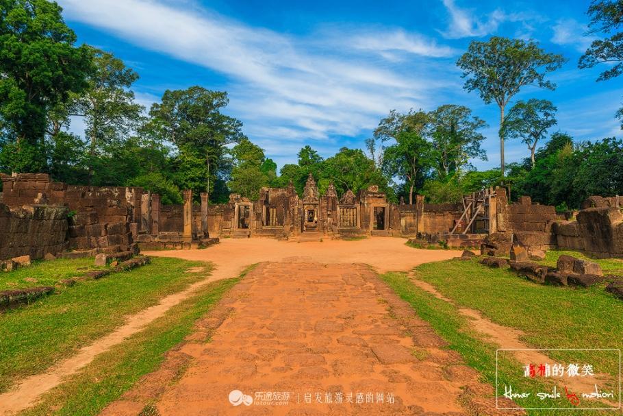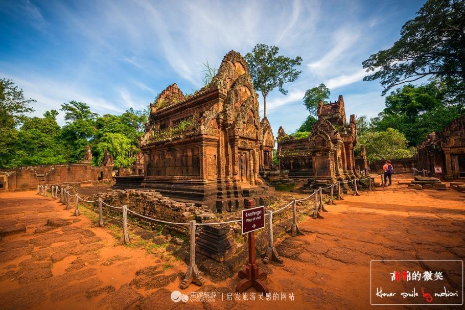 由于年代久远的关系,有的石柱开始不稳了,所以千万不要去碰触到。这里又名“班蒂斯蕾”, 走在中间的小路上,看着周围的建筑小巧玲珑、精致剔透、富丽堂皇,不愧是吴哥古迹中风格最独特和最精致的建筑群之一,有“吴哥古迹明珠”和“吴哥艺术之钻”的美誉。
