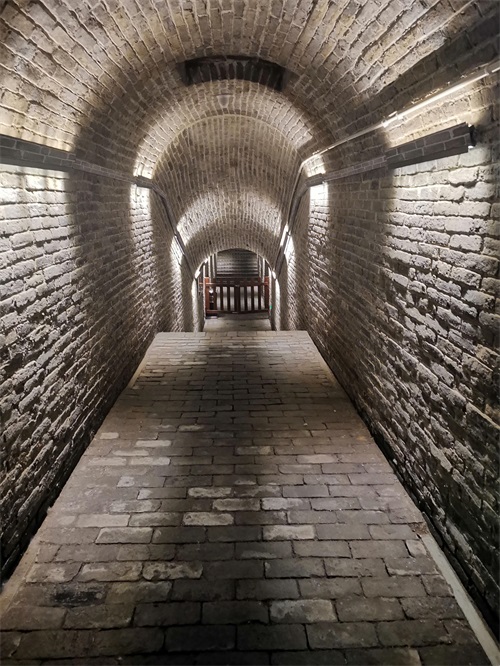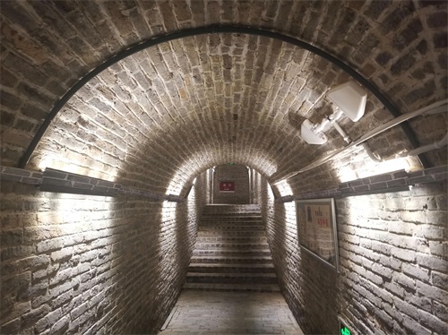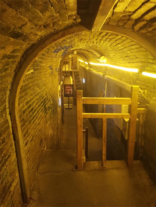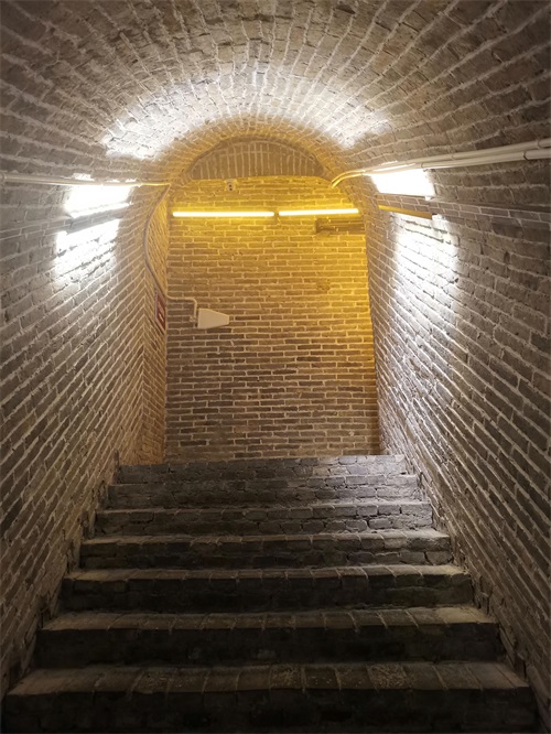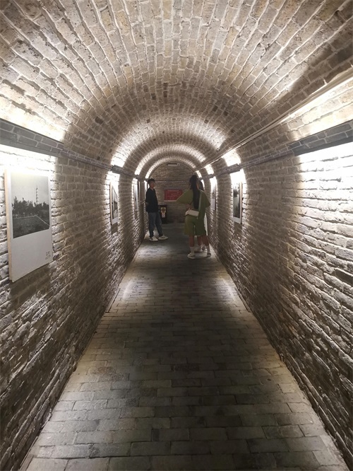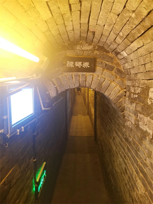从古地道中的青砖上,仍可以找到先前士兵作战的痕迹,地道两侧每隔两米便会出现对称放置的挡腿板,间隔几十米又设有障碍道。