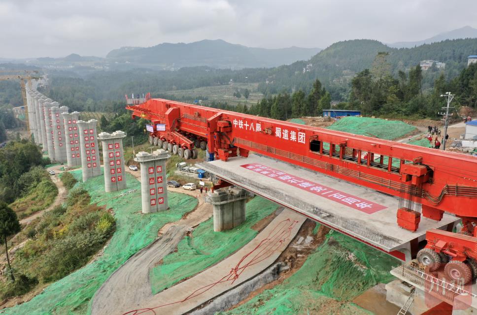 连接川陕革命老区的汉巴南铁路南充至巴中段迎来施工关键节点——11月18日11时30分,汉巴南铁路大东中桥、潘家岩特大桥同步进行首榀梁架设,标志着汉巴南铁路开始架梁,由线下施工转入线上施工阶段,为早日建成通车奠定了坚实基础。