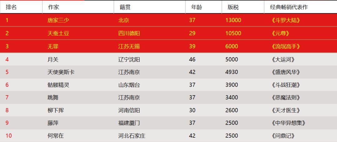 在第12届网络作家收入榜上,我们可以很明显地看到,夺魁的唐家三少收入高达1亿3000万,平均月收入在一千万以上。如果有1999名网文作家月收入为0,那么他们和唐家少三的月收入加在一起同样满足人均月收入5000的数据。