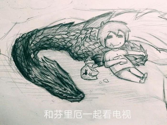 她的哥哥是龙王芬里厄,是拥有着无上伟力的龙化形态,却智力如孩童般,在北京废弃的地铁道构建的尼伯龙根里囚禁,守着她带去的老电视,一遍遍的重复看赌王,会用浑厚而低沉的声音说,薯片是最好吃的东西了。