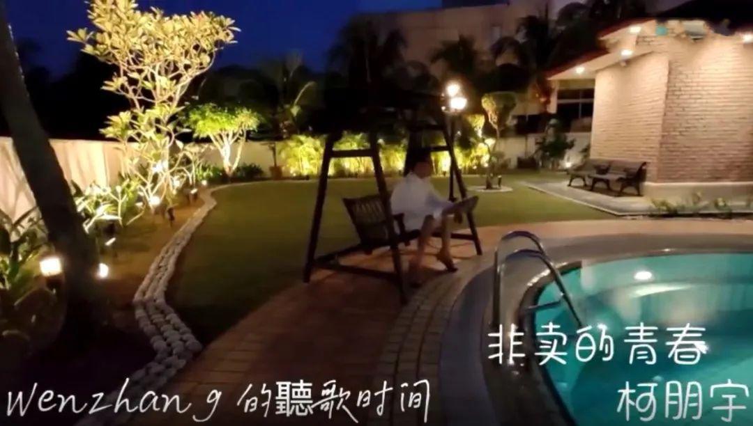 文章很喜欢在院子里听歌,手里拿着一个便携音响,有时坐在秋千上,有时在泳池边漫步,非常惬意。