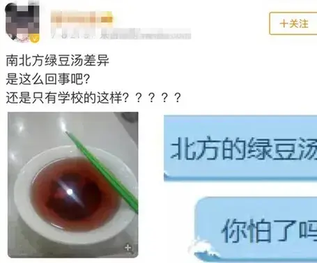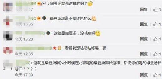 明明是一碗绿豆汤,却发出了诡异的红光,不少南方小伙伴惊掉下巴,“红色绿豆汤?认真的?”更有甚者直接放图告诉我们南方绿豆什么颜色。