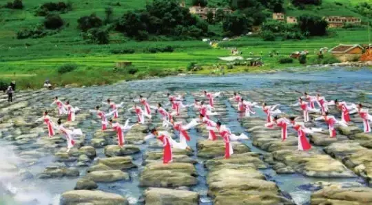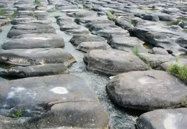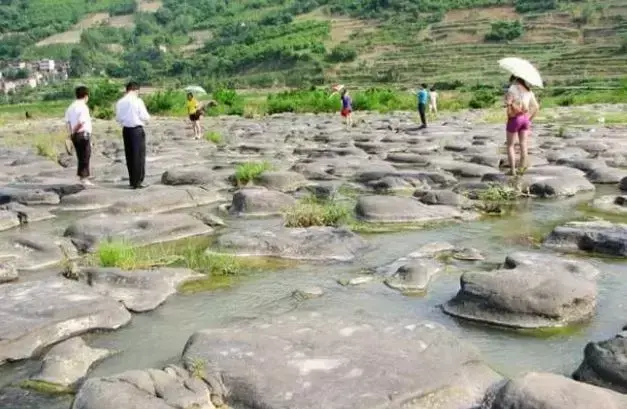 当地村民介绍,这里冬暖夏凉,鸟语花香,站在高处往下看,天然棋盘颇为壮观。这么大一块块石头整齐有序地排列在河床上,且棋盘滩能“水横流”,对于这个千看棋盘巨石的来由,专家认为是一个难解之谜。