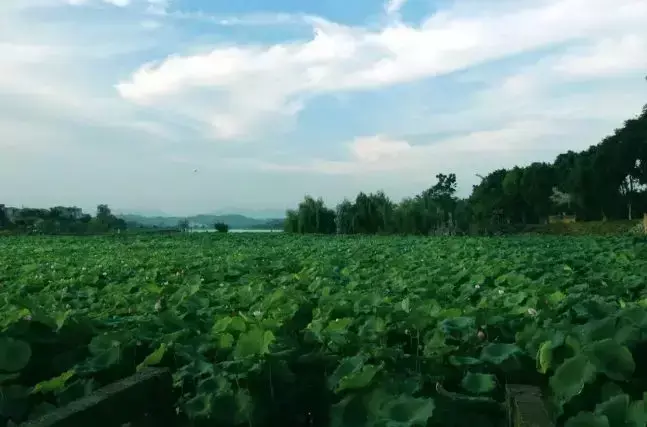 田东十里莲塘位于田东县祥周镇甘莲村,由右江河汊古河道演变而成。塘的水面南北约十里,塘里全是一片绿荷,故名十里莲塘。