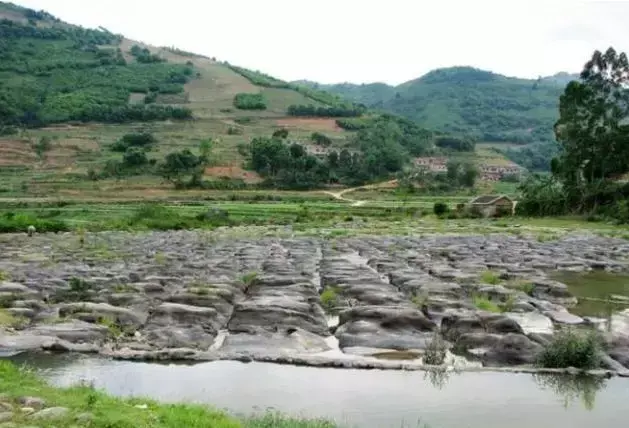 “神奇棋盘”位于距田东县城40公里的那拔镇,“棋盘”所在的地方是灵岐河上的棋盘滩,坐落在离那拔镇政府3公里的田东县最高峰——莲花山下。