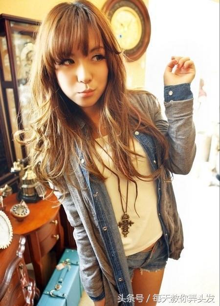 碎刘海中长发烫发发型,灵动活泼,将这款烫发发型融入动感的染发发色,让整个发型制造出蓬松的发型效果,凸显出烫发发型的时尚魅力,碎刘海的发型设计,彰显小女生可爱清纯的时尚韵味。