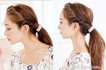 蓬松但不凌乱的马尾扎发造型怎样做才好看呢?这款偏分造型的长发将刘海发丝做成两股编发造型,最后将发丝汇合在一起做成低马尾扎发,点缀上发圈展现成熟女性的婉约气质。