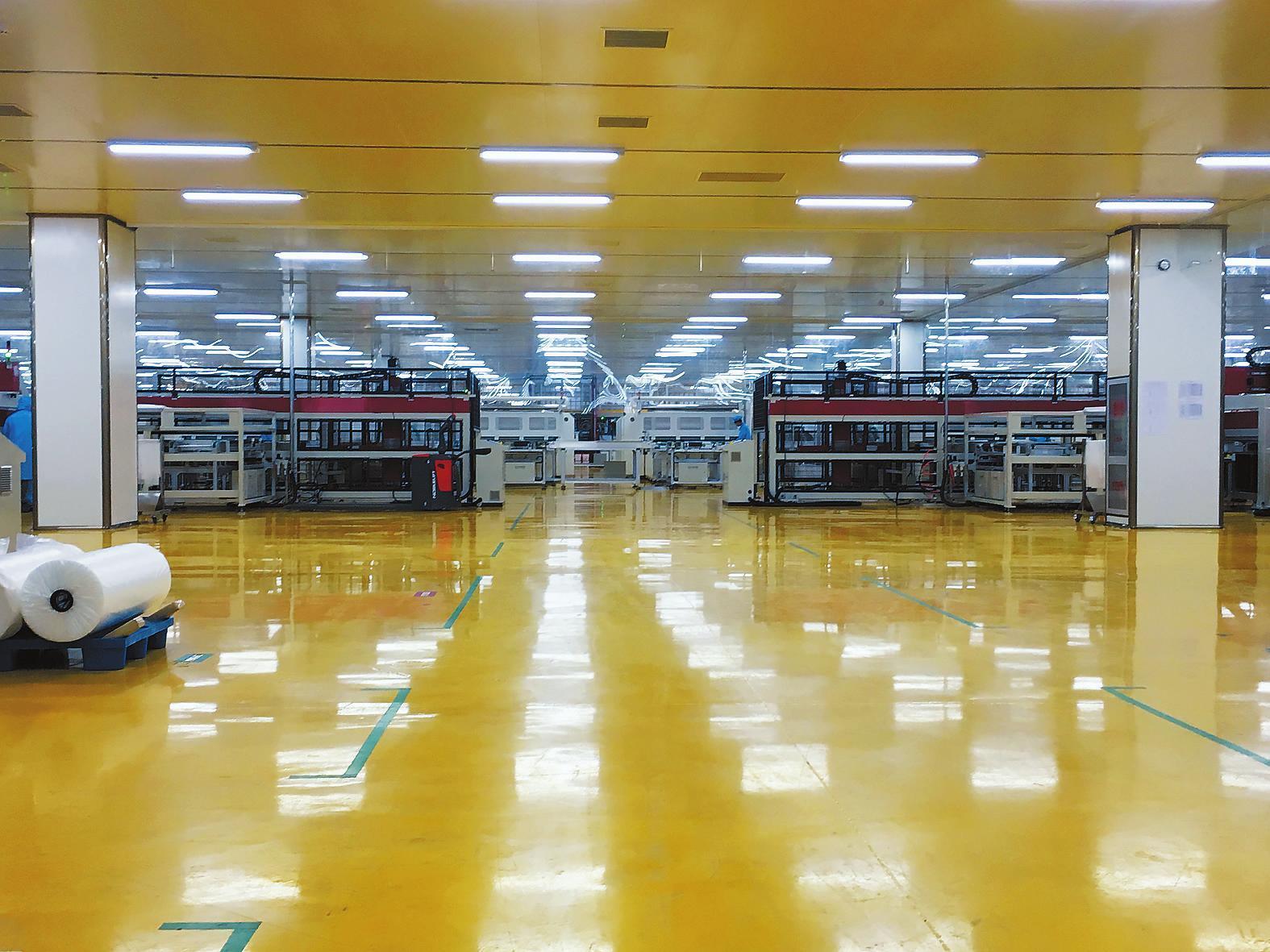二是适应性最强。生产线拥有全行业最高的适应性,全自动焊接机的智能化栅线调节系统,可实现4主栅及5主栅产品任意切换;三是跨度最大,工厂以生产60片、72片传统太阳能电池组件产品为主,同时智能化的自动排版、灌胶封装系统确保1.5吉瓦产能可在传统与双玻组件之间自由切换,是行业产品跨度最大的生产线;四是人均生产效率最高。高自动化生产设备的全面使用,大大提高了生产效率,年人均生产量达到2兆瓦,创行业最高水平;五是行业最大的单体生产车间。厂房占地面积5万平方米,拥有组件年产能1.5吉瓦,是行业迄今为止最大的单体生产车间;六是能耗最低。车间集实 验检测、动力供应、产品生产、仓储物流于一体,单位能耗降到了行业最低水平。