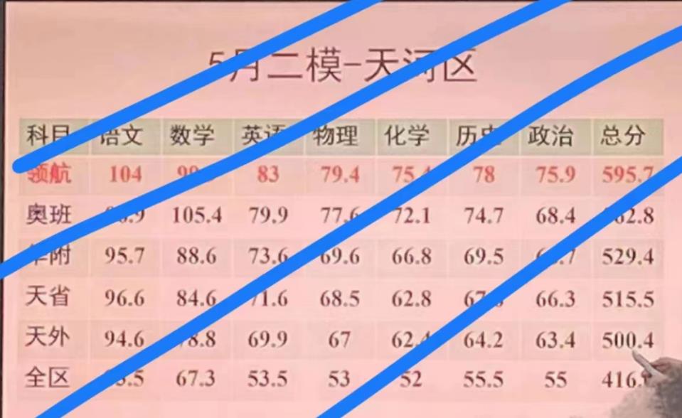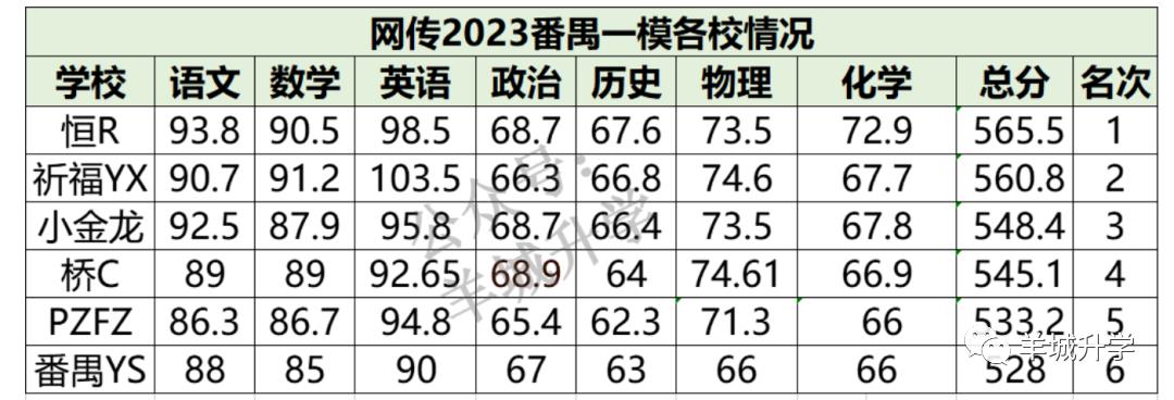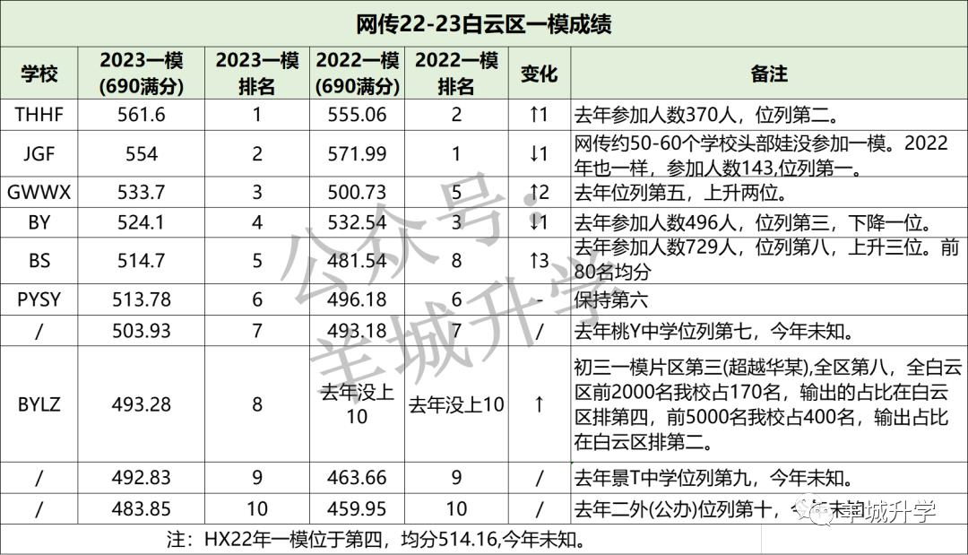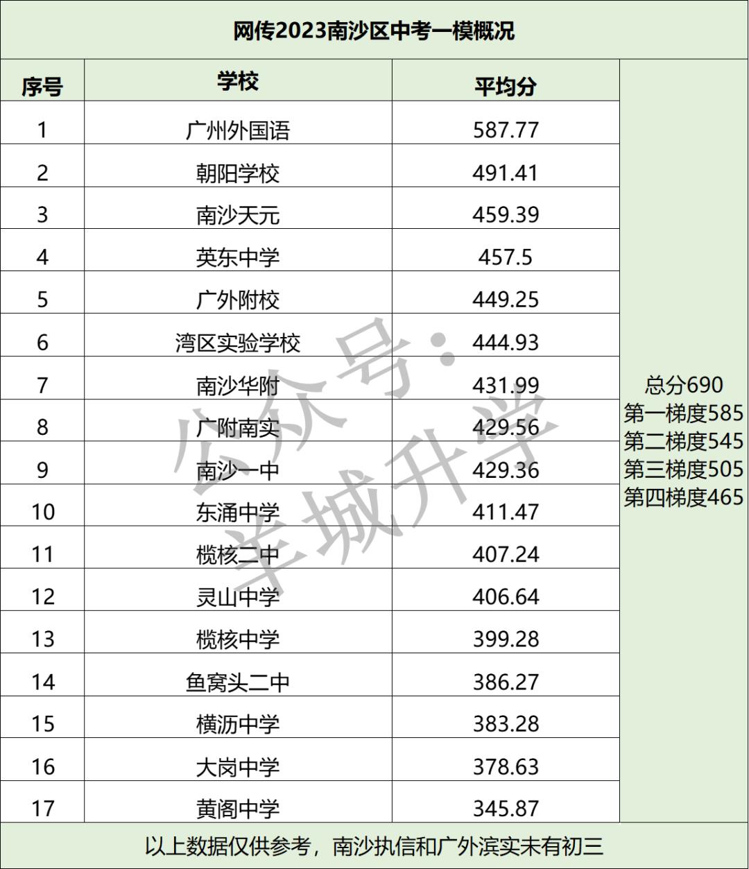 从一模来看排第二的是朝阳学校,成绩不俗,证明了自己的加工能力。第三则变成了二中天元,曾经第三的广外附校滑至第五,第四则为民校英东。但是差距不大,作为南沙头部公校的广外附校依然值得期待。