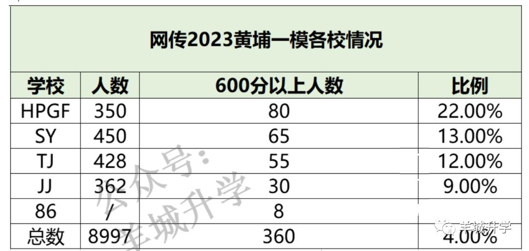 网传黄埔一模的情况,按照坊间的分析,大概586分以上就是在一档线上。本次流出的数据更多是体现高分段学生的占比情况,黄埔广附和二苏毫无疑问占据榜首,2020届两个学校还没转公,都是热门民校,HPGF凭借其频繁HD招来了不少优质生源,苏元虽然当年没什么动作,但是基地班和启航班也是优生向往地。三年后依旧是黄埔榜首,足以证明其加工能力了。