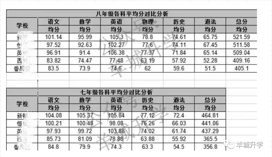 网传今年越秀区初一、初二、初三上学期期末统测前7/8名的数据