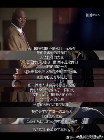 影片末尾有一句话,让我感受颇深:“Our deepest fear is not that we are inadequate. Our deepest fear is that we are powerful beyond measure. It is our light, not our darkness that most frightens us.”