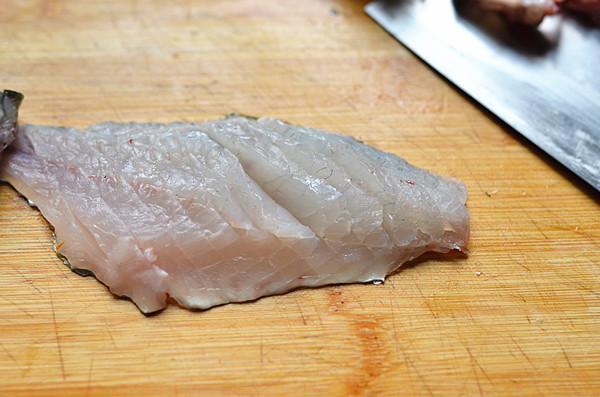 1、首先我们把鱼洗净,多用水冲洗几遍,切去鱼头,用刀横着从中间沿着鱼骨剖开成三片,尾部不要切断。