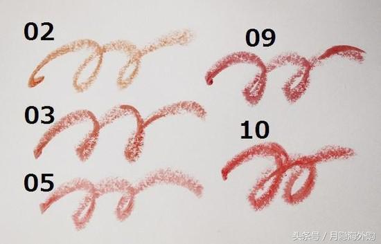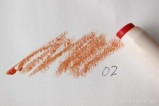 从颜色上来看比02号橙色微微红一些。但从包装和外观上,会以为是粉红色,但用过后发现是比粉红色还华丽的自然红。