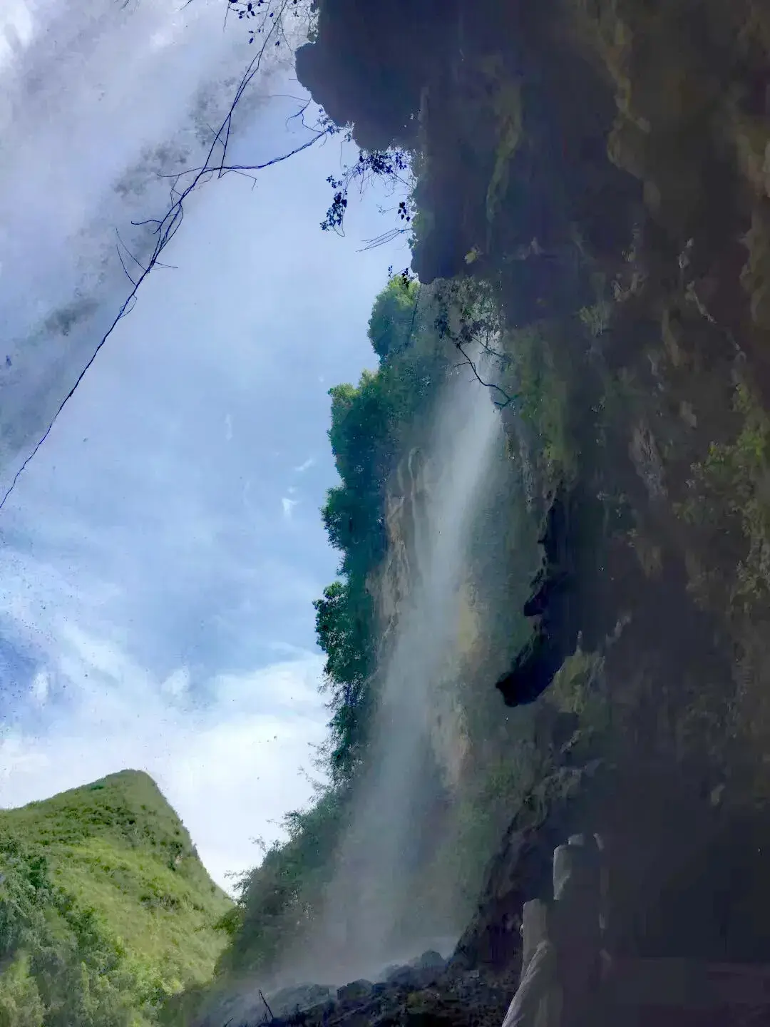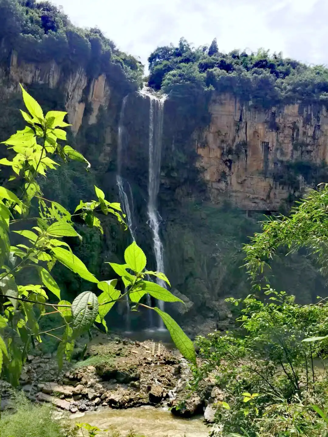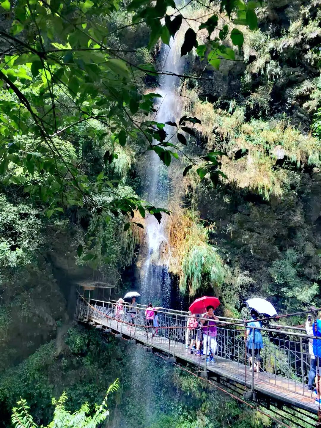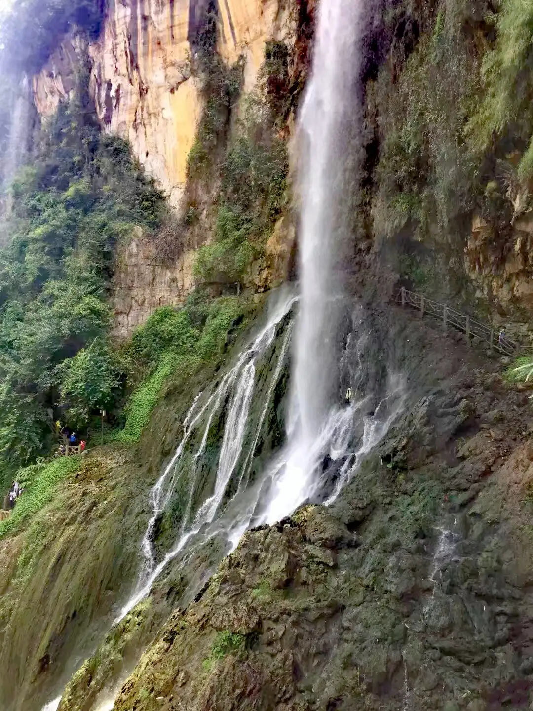 瀑布从落差200多米的悬崖倾泻而下,非常壮观,感觉瞬间穿越到侏罗纪。