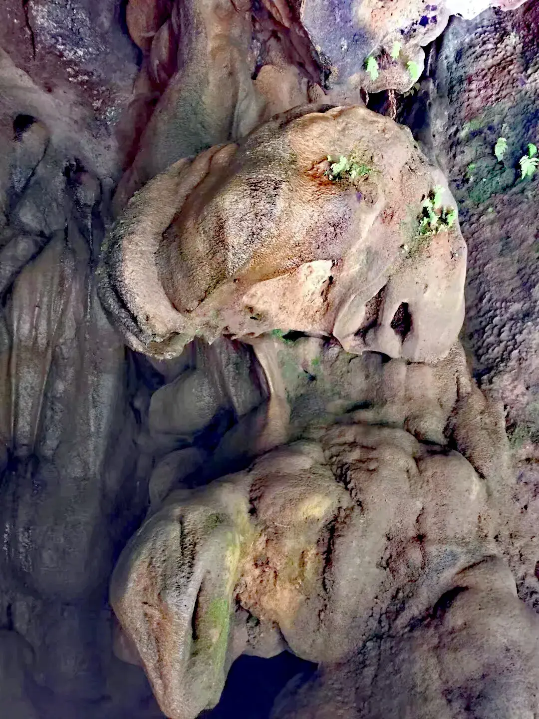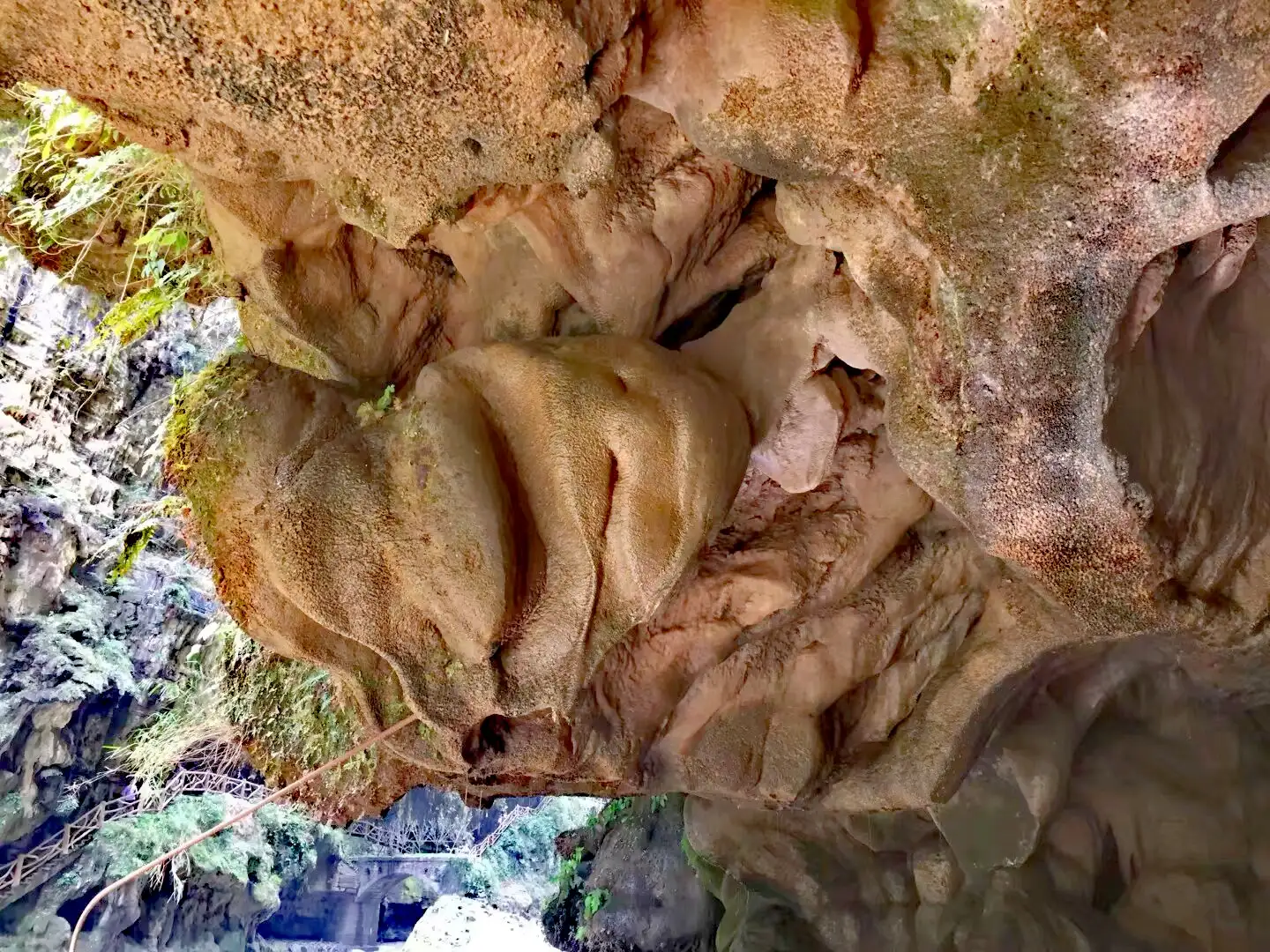 崖壁间不时还可以看到石缝中生长的蕨类或苔藓,壁面非常潮湿。