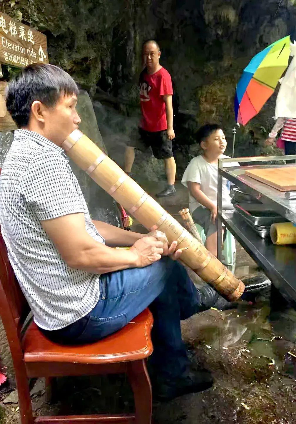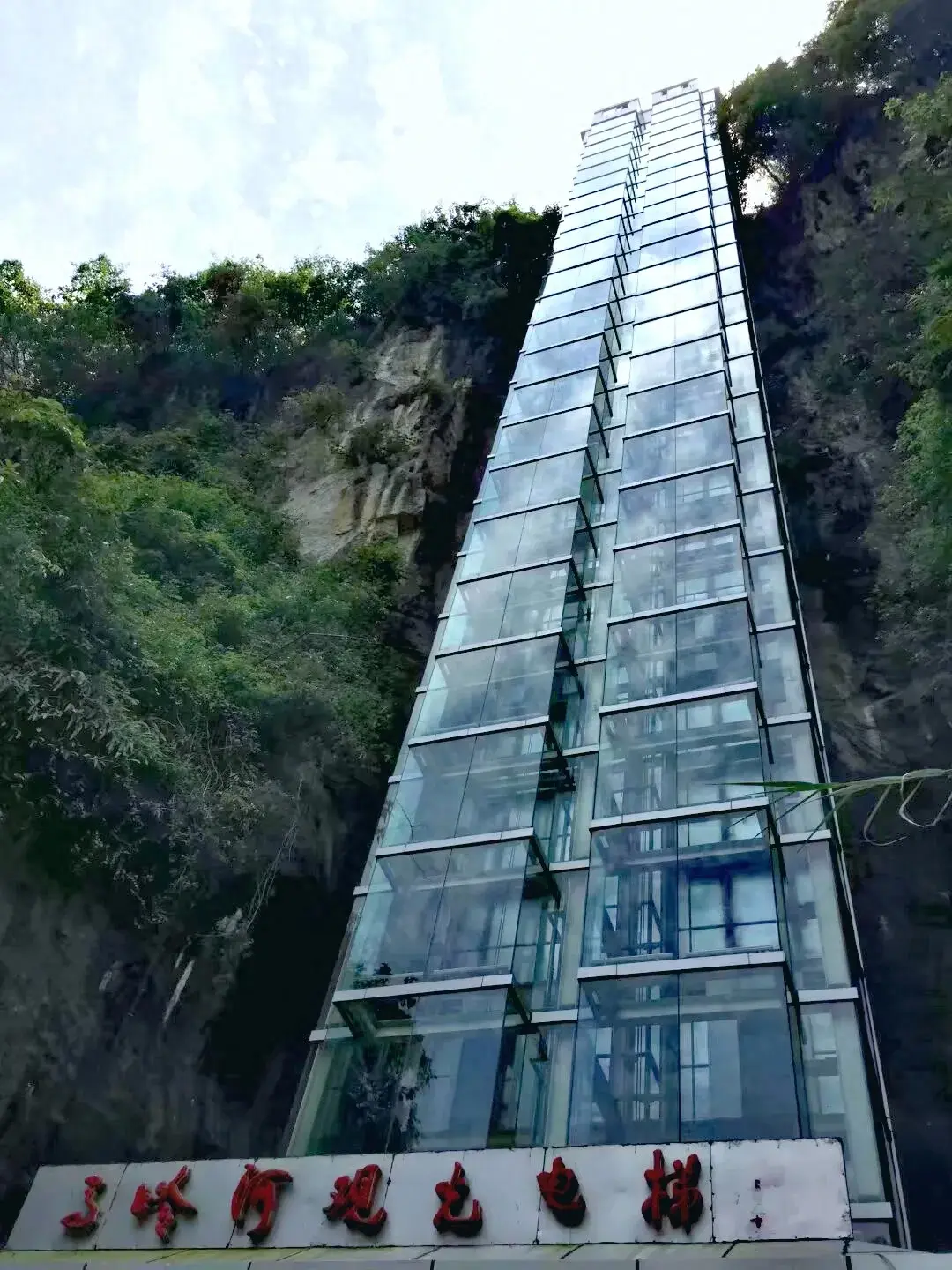 大概是为了防止再发生类似缆车事故吧,管理部门在崖壁上建造了垂直上下的电梯,既方便了老年人,也增加了安全系数。