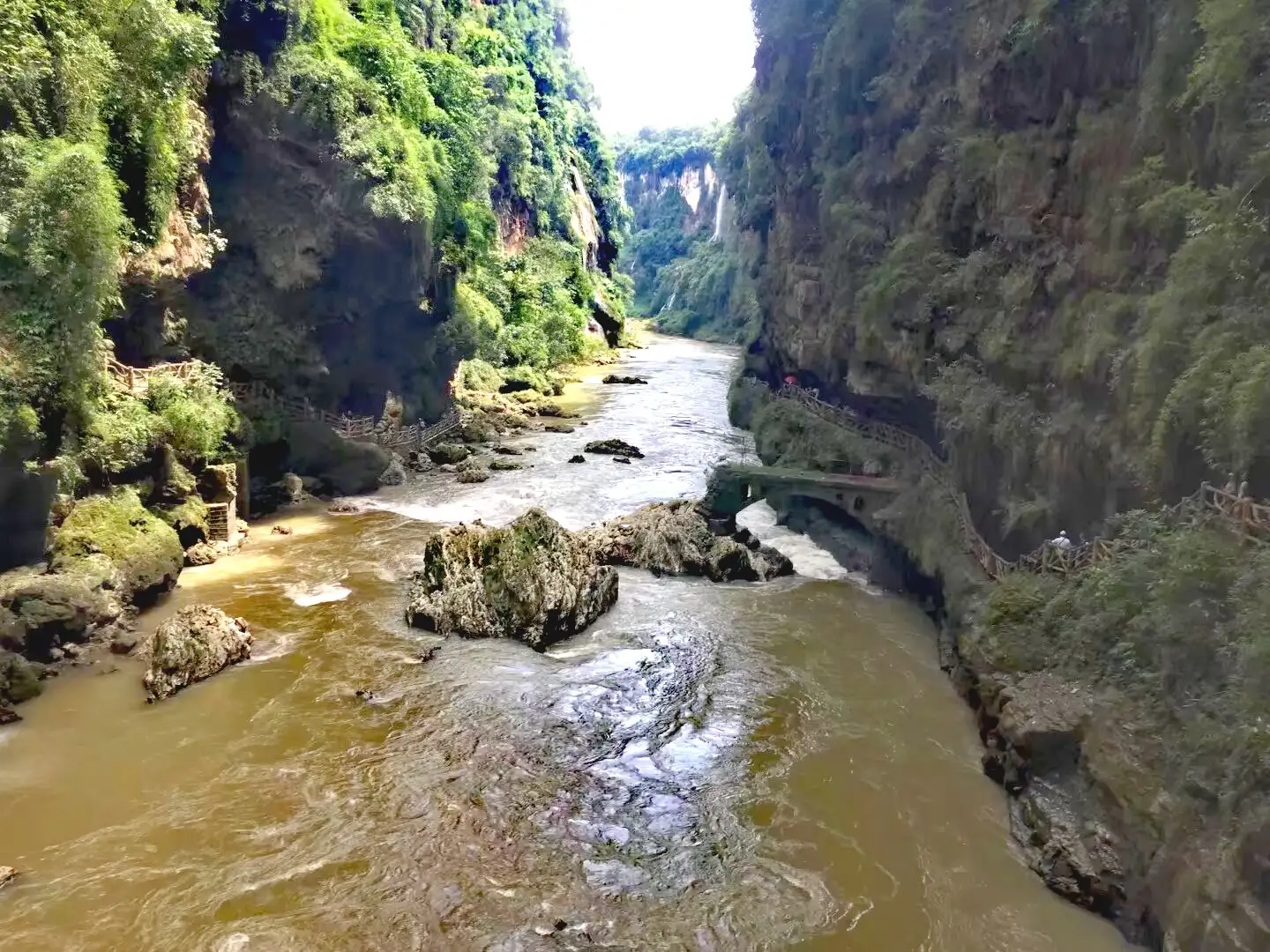 马岭河峡谷与其说是峡谷,不如说是地缝,那是6500万年前在地壳运动中拉开,且在水流长期侵蚀下形成的一条奇险幽深的狭窄地缝。