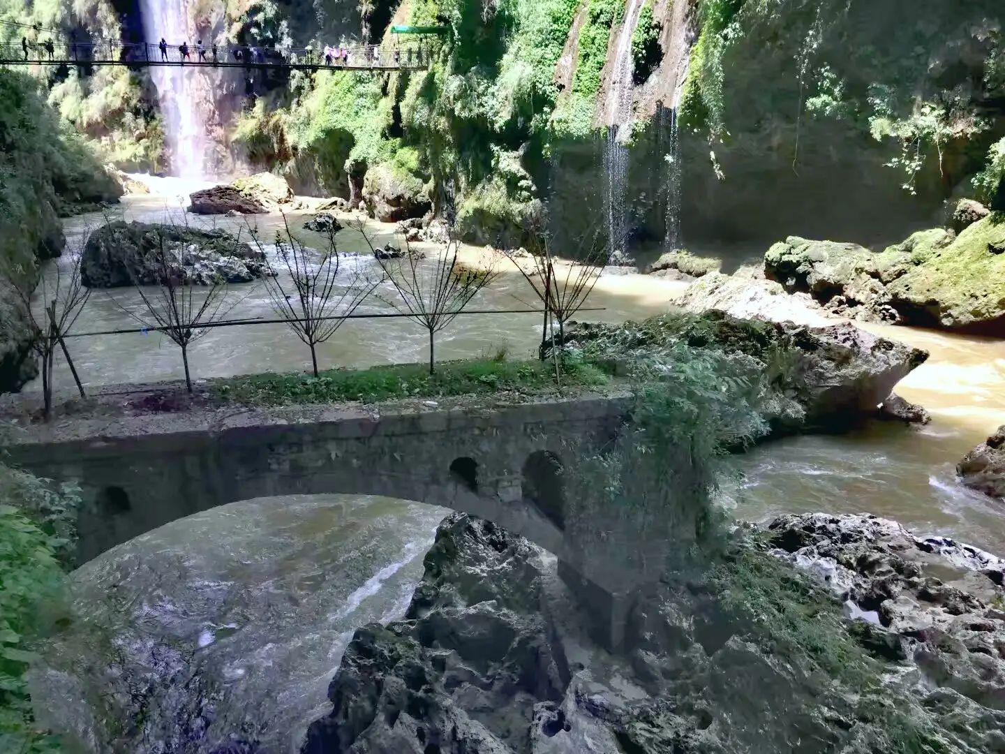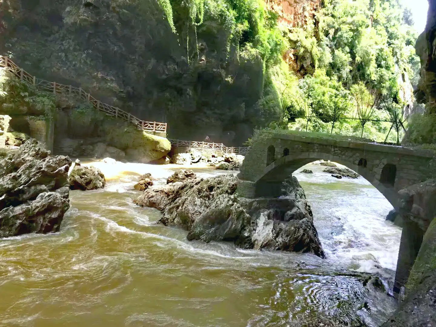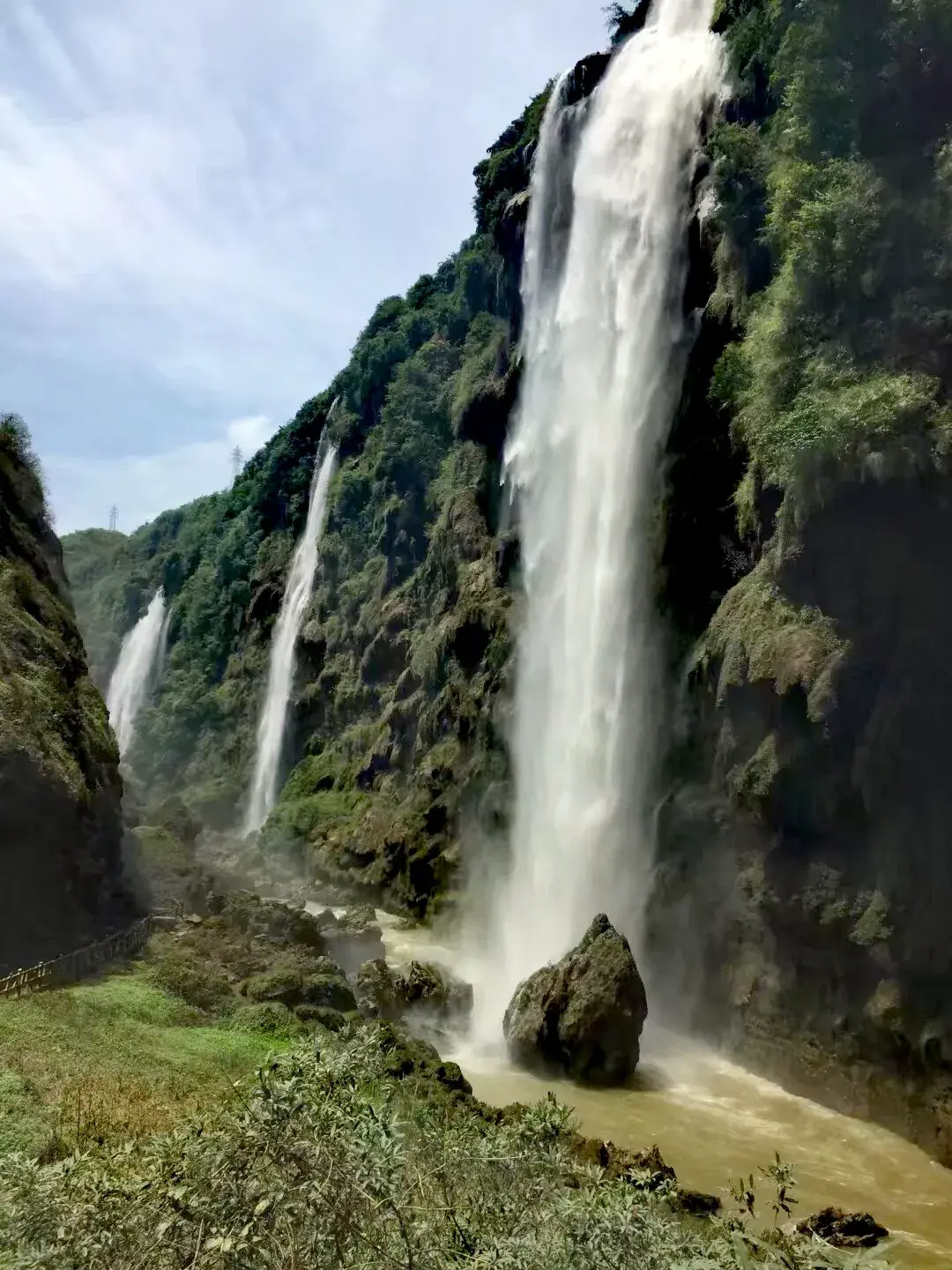 峡谷内有很多瀑布,最壮观的是万马奔腾瀑布群。