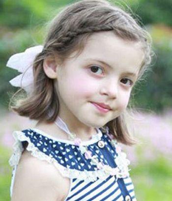短头发的四年级小女孩夏天的时候可以尝试下这款小女孩短发甜美刘海编发发型哟,中分刘海以两股辫的方式沿着发际线向后扭转一起来,最后的发尾扎脑后扎起来,甜美的编发刘海半扎发,让短发女孩也变成了美萌小公主了呢。