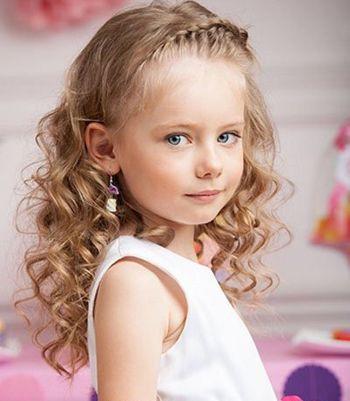同样是刘海编发发型,不过这款小女孩偏梳甜美刘海蝎子辫编发发型更加的有欧美风情,大偏梳的刘海编织成立体感蝎子辫,从侧头的一侧延伸到另一侧,而长发则烫成优美的小卷发,披散在身后,是一款非常优雅时尚的小女孩刘海编发发型。