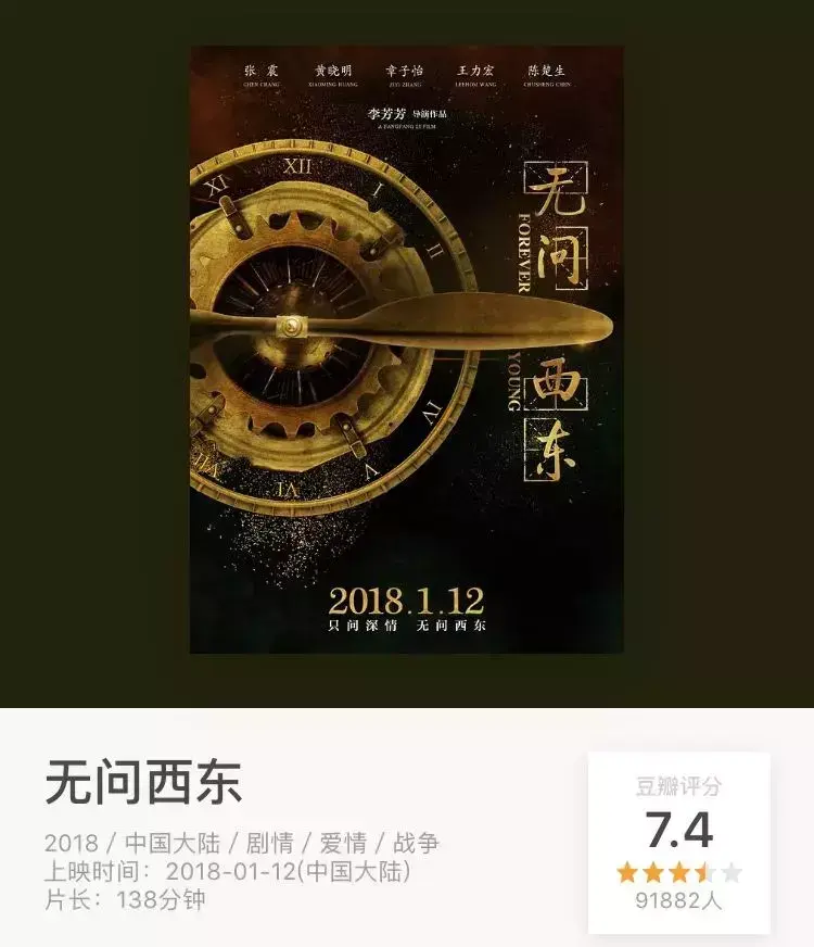 由章子怡、黄晓明、王力宏等人主演,据说最初是作为向清华大学百年校庆献礼的作品,片名《无问西东》直接来源于清华大学校歌中的一句歌词“立德立言,无问西东”。
