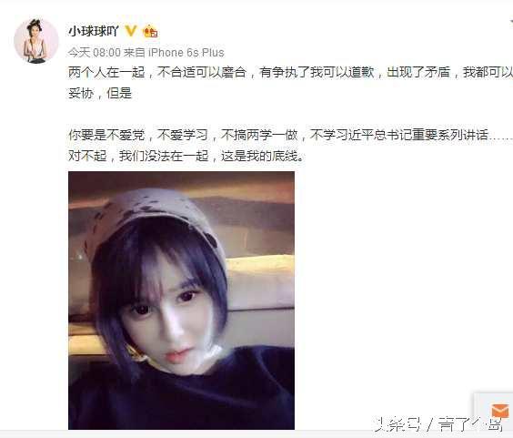 8月9日,正值七夕情人节,改了微博名字的赵珈萱在网上,提出了自己择偶底线标准,似乎是和现任男友宣告分手:“两个人在一起,不合适可以磨合,有争执了我可以道歉,出现了矛盾,我都可以妥协,但是 ,你要是不爱党,不爱学习,不搞两学一做,不学习近平总书记重要系列讲话……对不起,我们没法在一起,这是我的底线。”