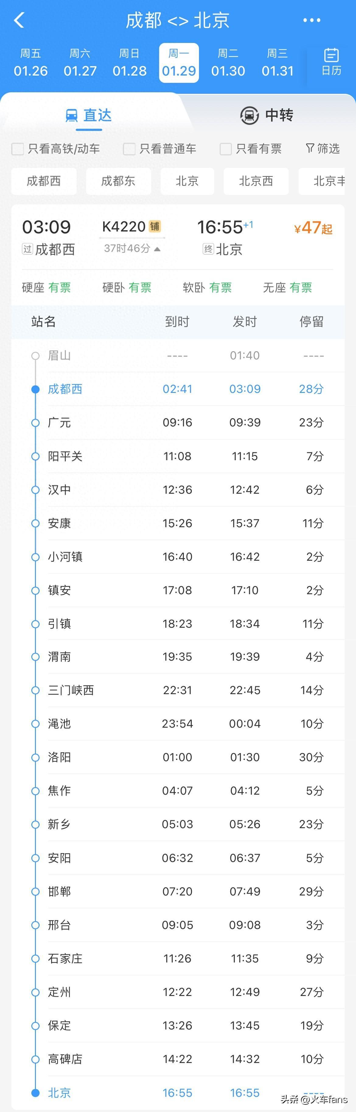 你没有看错,这趟列车从成都开往北京,将近38个小时,硬座票仅需47元!