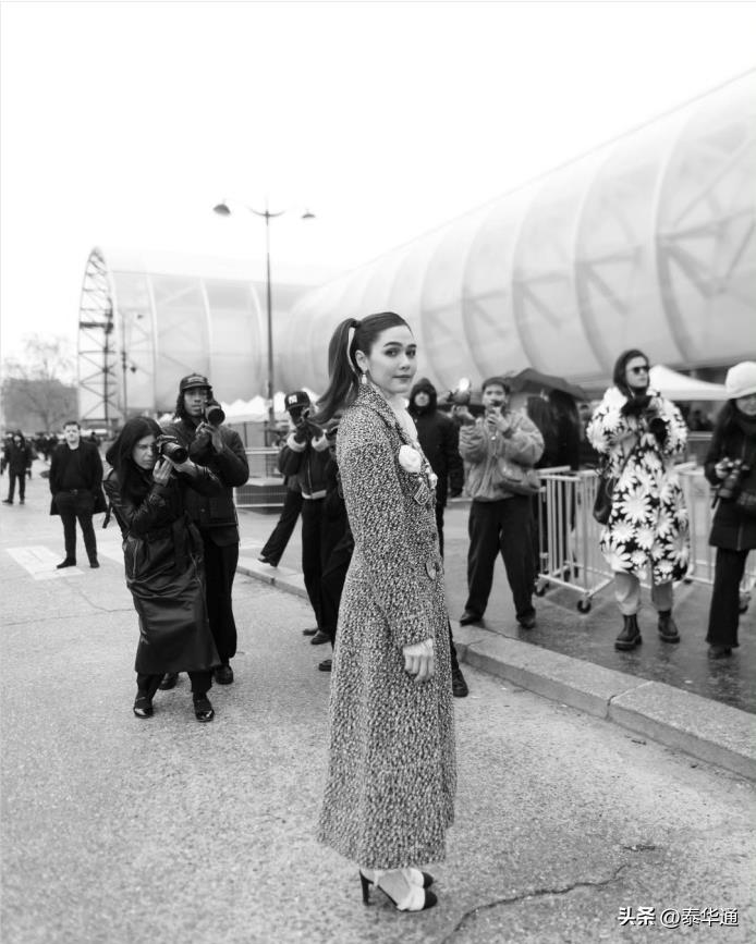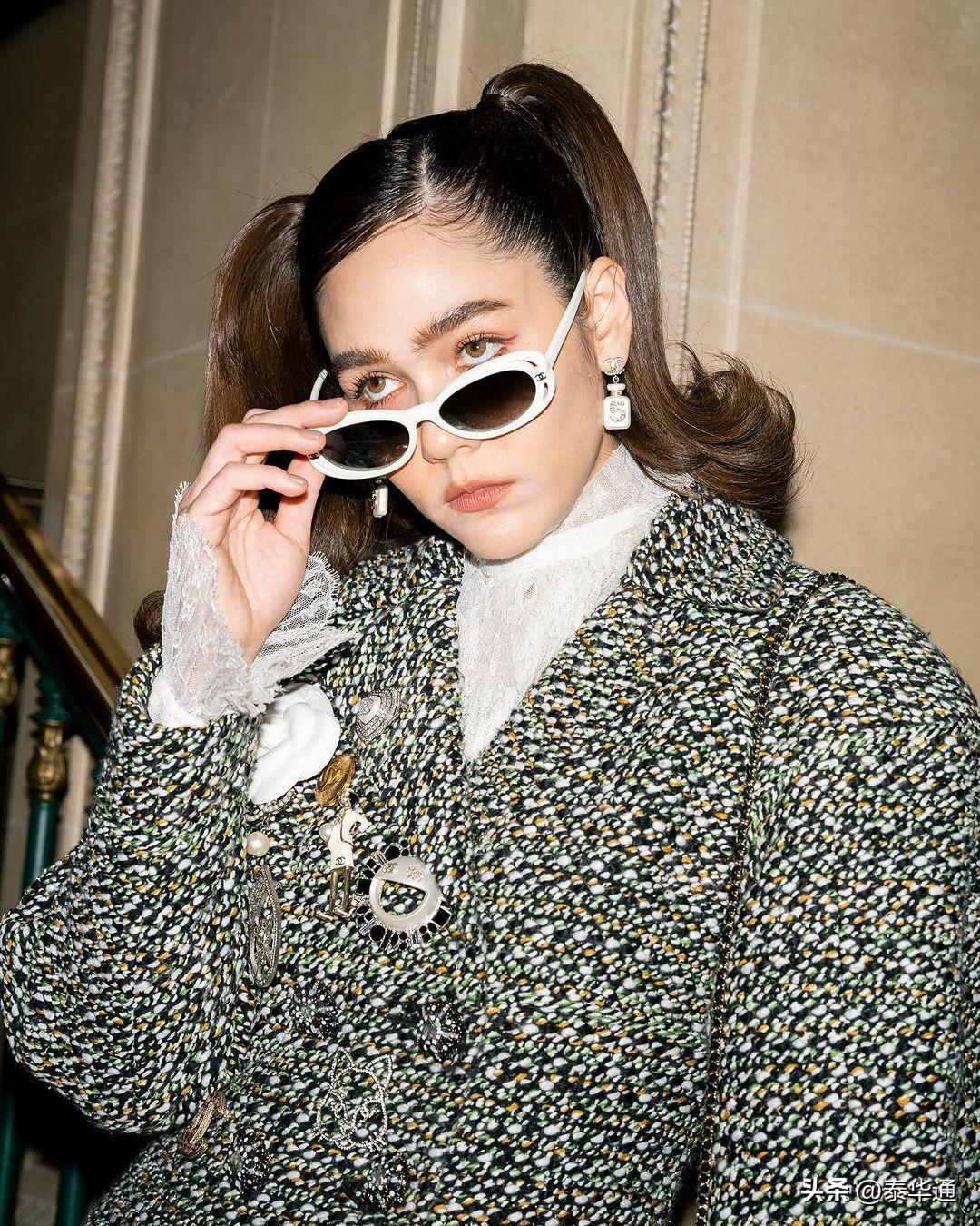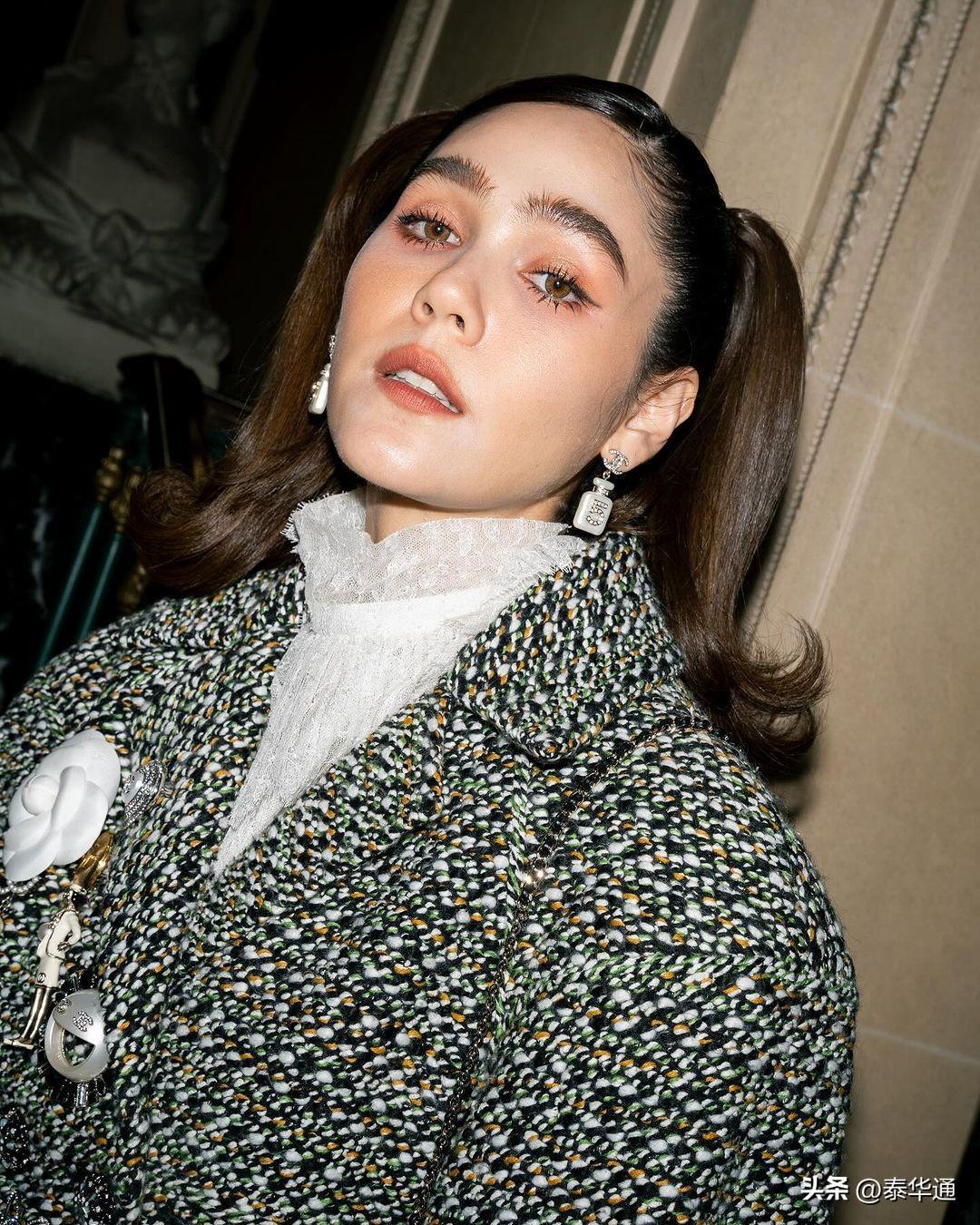 泰媒称,今年Chompoo穿的第一套服装是来自Chanel品牌的高定系列,她将穿着该套服装观看2024年Chanel春夏高级定制时装秀。据悉,该套服装采用的是粗花呢布料,外观优雅且华丽,搭配蕾丝袜更是为整套服装增加了高级感。