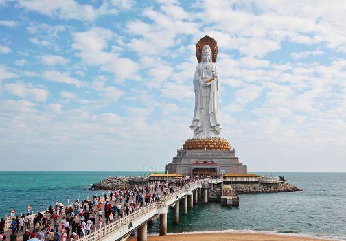 佛教经典记载观音菩萨有十二个愿望,第二个愿望是希望生活在南海,因此得名南海观音。在中国人的心中,观音菩萨占据这很大的地位,因为他救苦救难普度众生,让人们的心中得到安定,据一个老渔民说以前的时候台风肆虐,经常的给海南带来很大的灾难,但是自从南海观音像建成之后,台风就再也没有光临过三亚,所以就更加的吸引了大批的游客前去朝拜。