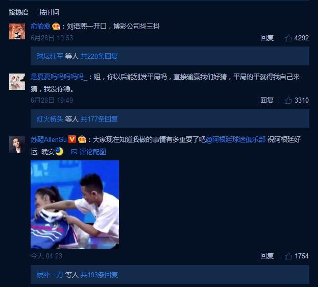 小组赛最后两天,刘语熙8场比赛全部猜错,可谓一个不大不小的“奇迹”,网友纷纷感叹:这是来自东方的神秘力量。
