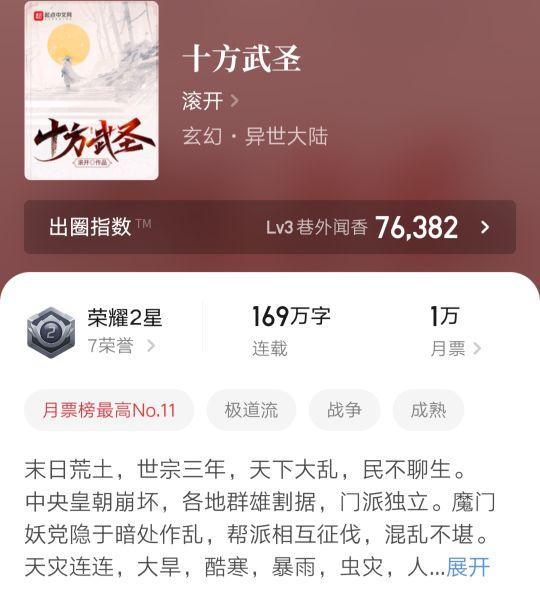 不管是滚开的《极道天魔》还是《万千之心》,还有如今的《十方武圣》成绩都非常好,但是他有一个通病,那就是开高走低,后期的热度总是比不上之前,要不然凭他也是能够晋升到白金之列的。