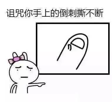 点评:这是一个有感觉的诅咒,心理想想撕倒刺心里就发麻,顺便一提一定要用指甲刀或者小剪刀剪掉倒刺,而不要撕扯倒刺,如下图。