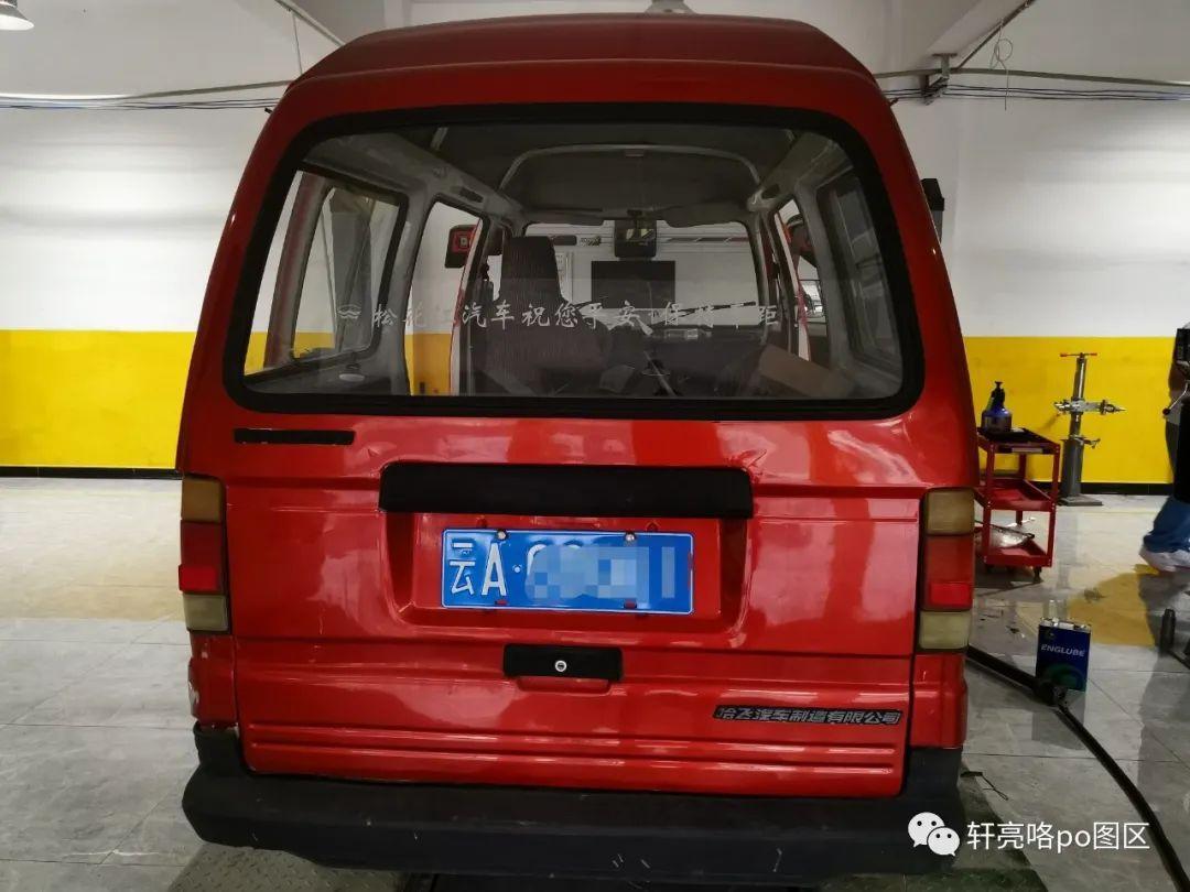 *松花江HFJ6350车尾视角,右下方还保留有“哈飞汽车制造有限公司”的水牌。