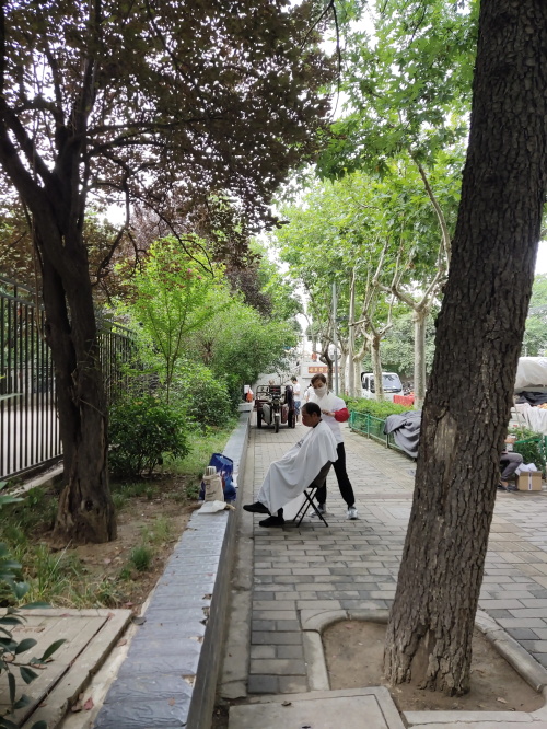 在我生活的城市,你会发现在背街的马路边上,河堤边上,总有这样一群人,大多是中年女性,简单的一把椅子,一个围裙,手持一把剪刀,一个梳子,就能支起一个剪头发的摊位。