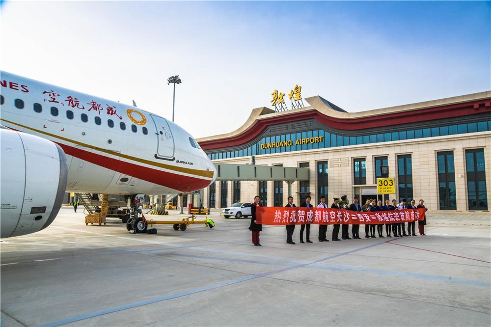 2018年3月25日,随着成都航空EU2297次航班成功降落敦煌机场,标志着长沙=西安=敦煌航班的正式通航,此航班是敦煌机场首次保障成都航执飞航班,同时也标志着敦煌机场在华中方向的网络布局进一步完善。