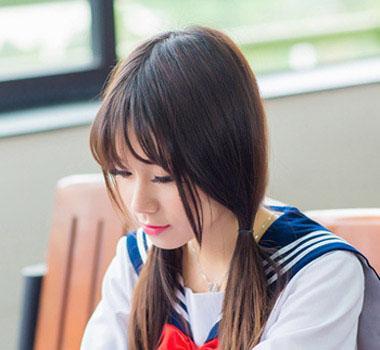 一般高中学业比较繁忙,没太多时间去对头发做过多的修饰,那就做上一款最简单的中长发发型吧,层次感的发梢,半圆形的斜刘海,简单又显甜美范。