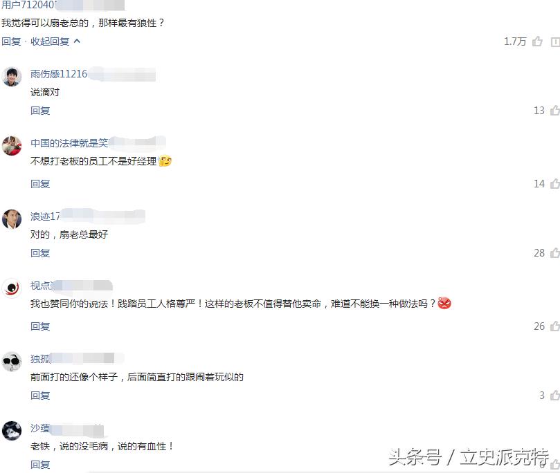 这位网友的回复很接地气,并且获得了1.7万的赞。小编也深有同感,要让老总上去,让员工每人扇100巴掌,那样才最有狼性。
