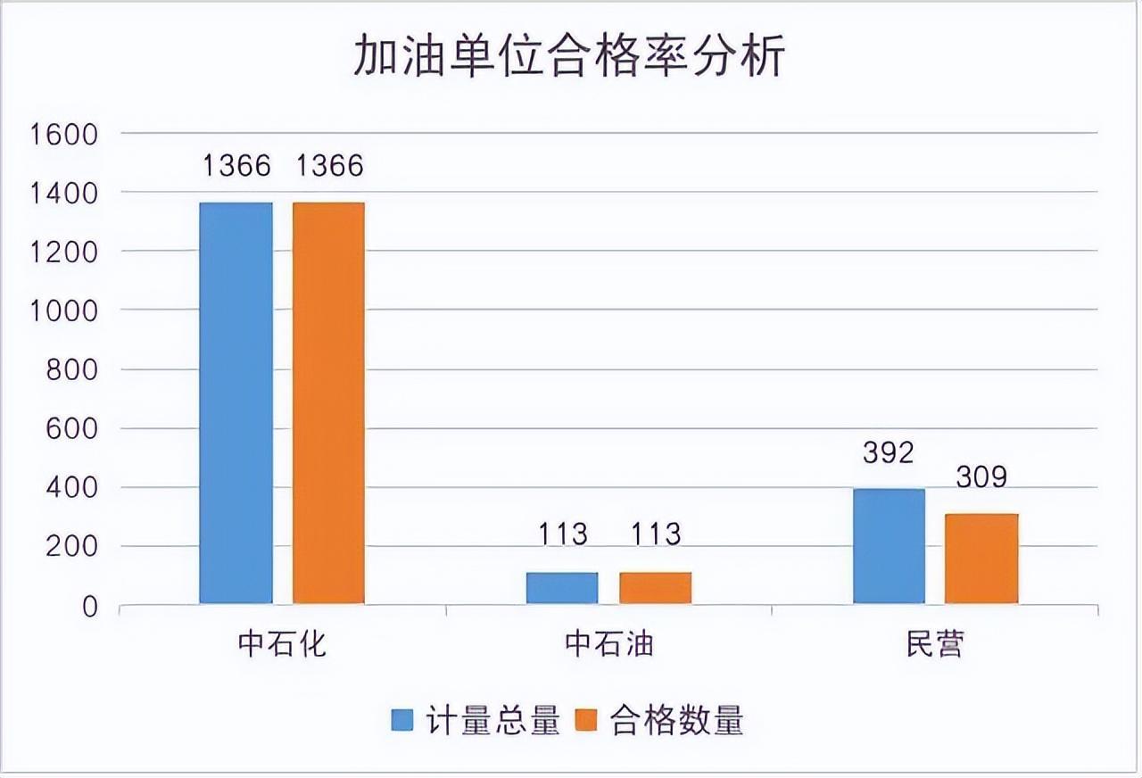 另外,2022年度“诚信加油万里行”调查大数据显示,总共暗访样本加油站1871座,其中民营加油站392座,民营企业加油计量合格率为78.83%。