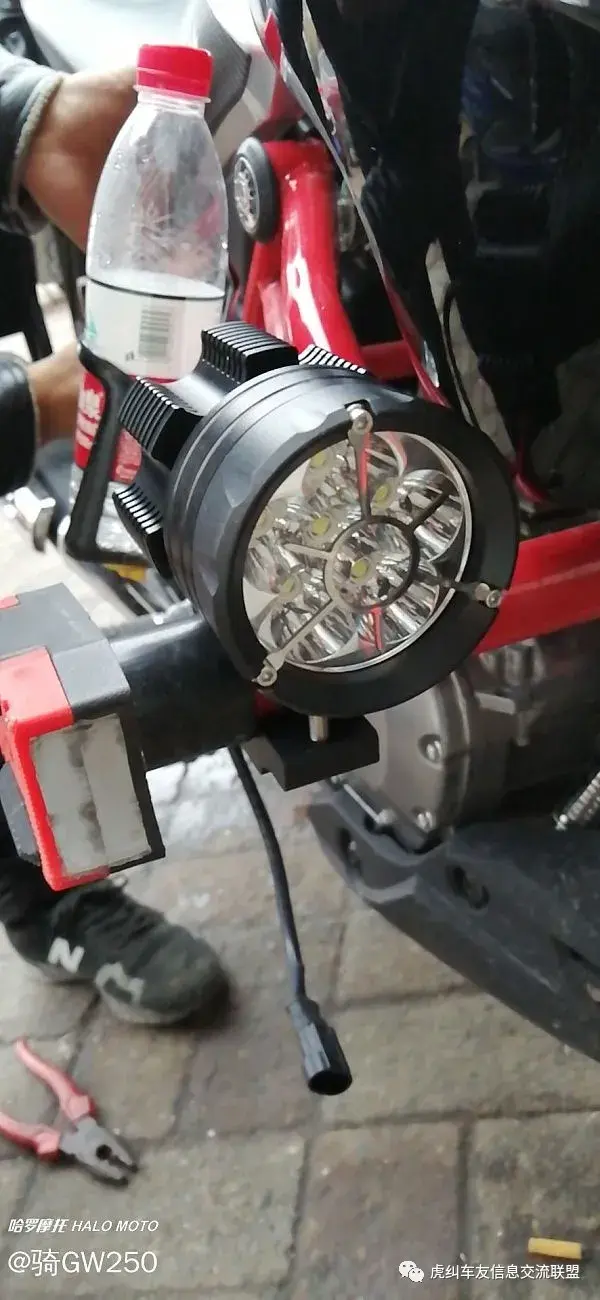 加装大B6射灯,比大灯白亮,大白天几十米外反光路标都很亮,市内人多还是慎用。但不如大灯聚光和有切线。