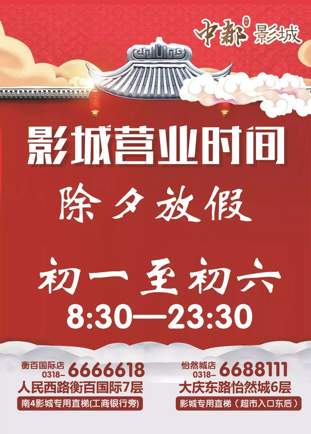 最新:衡水中都影城春节营业时间通知!(衡百国际店、怡然城店)