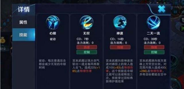 神速:宫本武藏向前神速突进,这个技能在冷却之前可以连续释放三次;