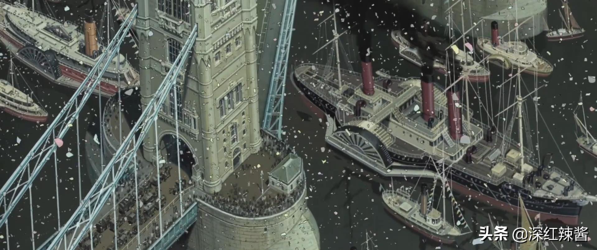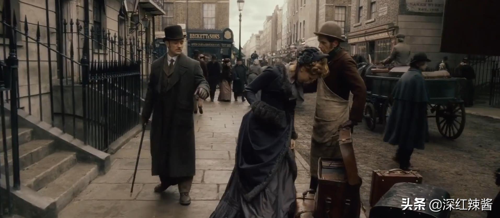 而所谓以维多利亚时期为背景创作,实际表现出来,就是以众多的复古元素堆砌而成的直观内容。其中最为突出的便是服装造型与城镇建筑。