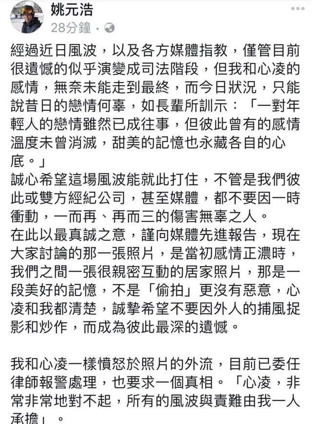 同时他还非常“负责任”地表示:“心凌,非常地对不起,所有的风波与责难由我一人承担。”