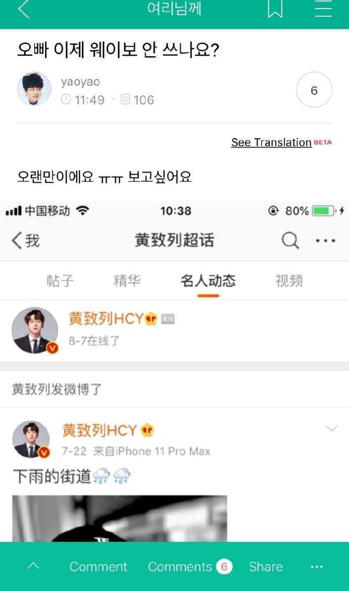 日前,有一位中国粉丝发现韩国艺人黄致列最后一次发微博是在7月22日,而之后就没有再更新了。该粉丝到黄致列的官方粉丝cafe提问:“Oppa现在不用微博了吗?”,得到了黄致列回复!
