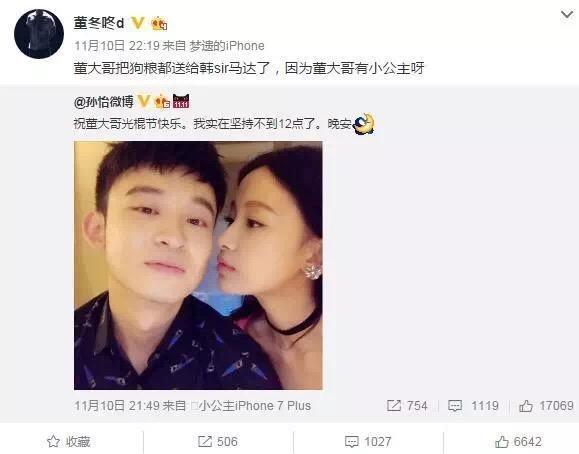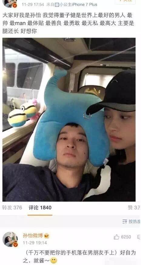 同为24岁的董子健、孙怡在社交平台上和其他年轻人一样超级爱撒狗粮,有时候还偷上对方微博夸自己。