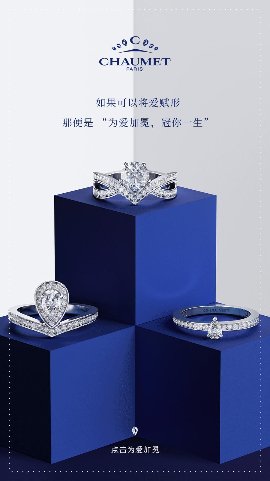 有着法国“情感珠宝帝国”美誉的CHAUMET,拥有造型多元、寓意丰富的婚尚系列。Crown Your Love 为爱加冕,打造你的专属指间信物。