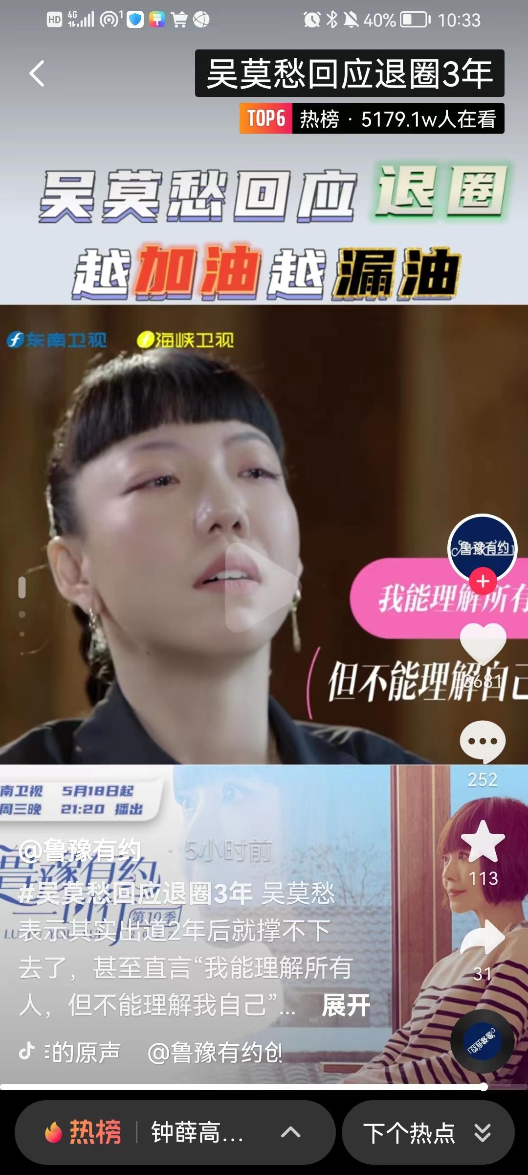 今次,在抖音热榜上再次看到这档访谈节目的片段,锅姐表示很是心疼吴莫愁。