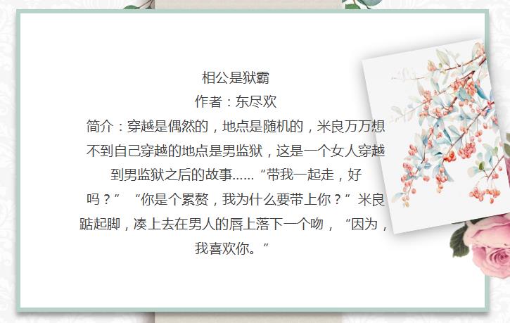 简介:穿越是偶然的,地点是随机的,米良万万想不到自己穿越的地点是男监狱,这是一个女人穿越到男监狱之后的故事……“带我一起走,好吗?”“你是个累赘,我为什么要带上你?”米良踮起脚,凑上去在男人的唇上落下一个吻,“因为,我喜欢你。”